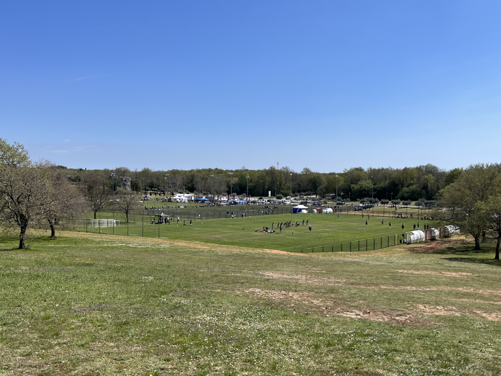 A pocos metros, el complejo deportivo despliega hasta 11 campos, tanto de césped artificial como natural, donde los partidos se suceden sin pausa durante todo el fin de semana. Esto permite que la acción sea continua, con múltiples encuentros en paralelo y un ritmo competitivo muy alto.