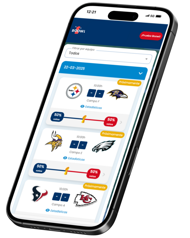 Boowl transforma la forma en que organizas torneos de Football y Flag, dándote el control total para crear eventos profesionales, dinámicos y memorables. Desde el armado de rosters digitales hasta el cálculo automático de marcadores y estadísticas en tiempo real, tu torneo cobra vida y engancha a jugadores y aficionados por igual.