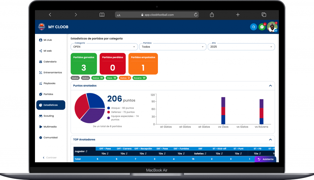 Con nuestra plataforma tendrás toda la información a tu alcance: drives, downs, roles especializados, penalizaciones, árbitros múltiples… y podrás registrar todo lo que necesites.